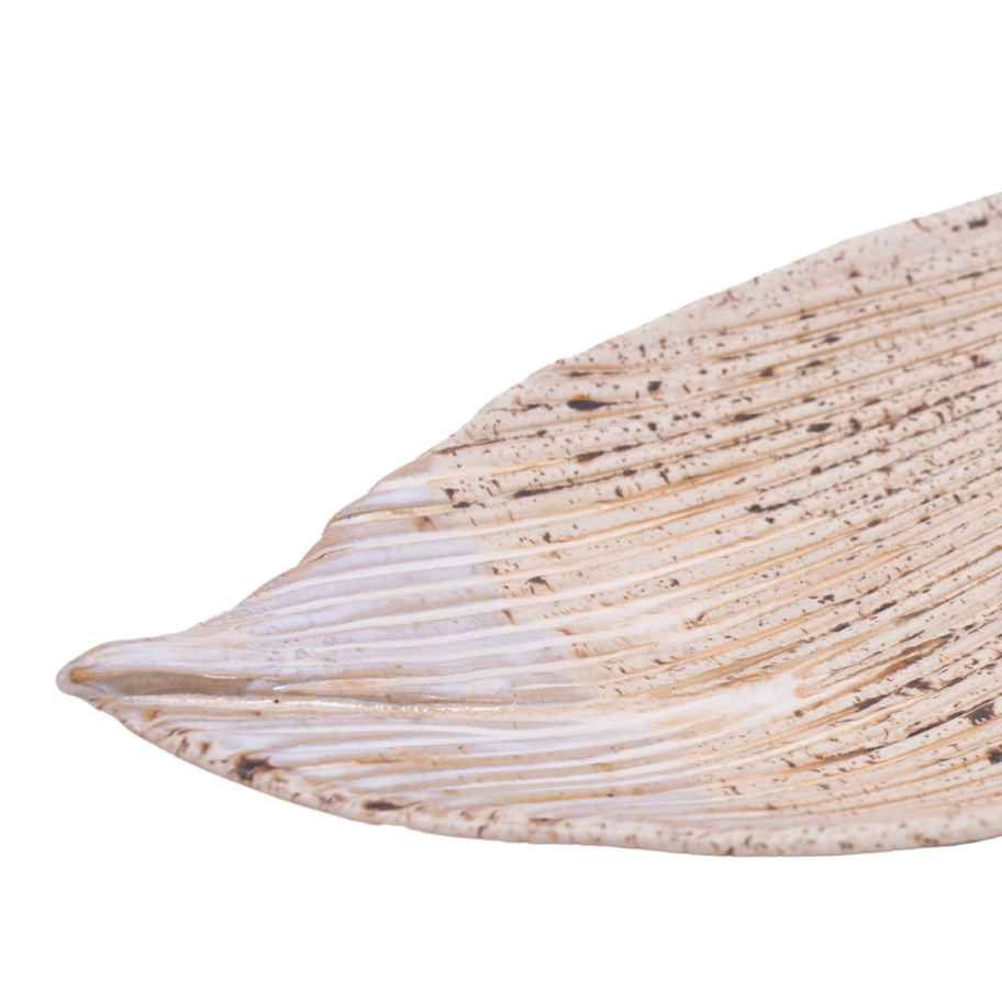 Embrace the natural elegance of the Flowing Leaf Plate from the Serenade of Shapes collection. Handcrafted from porcelain-like stoneware, this exquisite plate features a unique glaze application that creates stunning color transitions, reminiscent of a gently flowing leaf. The textured surface and organic shape add a touch of rustic charm to your table setting. Perfect for decorative purposes, the Flowing Leaf Plate brings a harmonious blend of artistry and functionality to your home. This plate is suitable for food use.